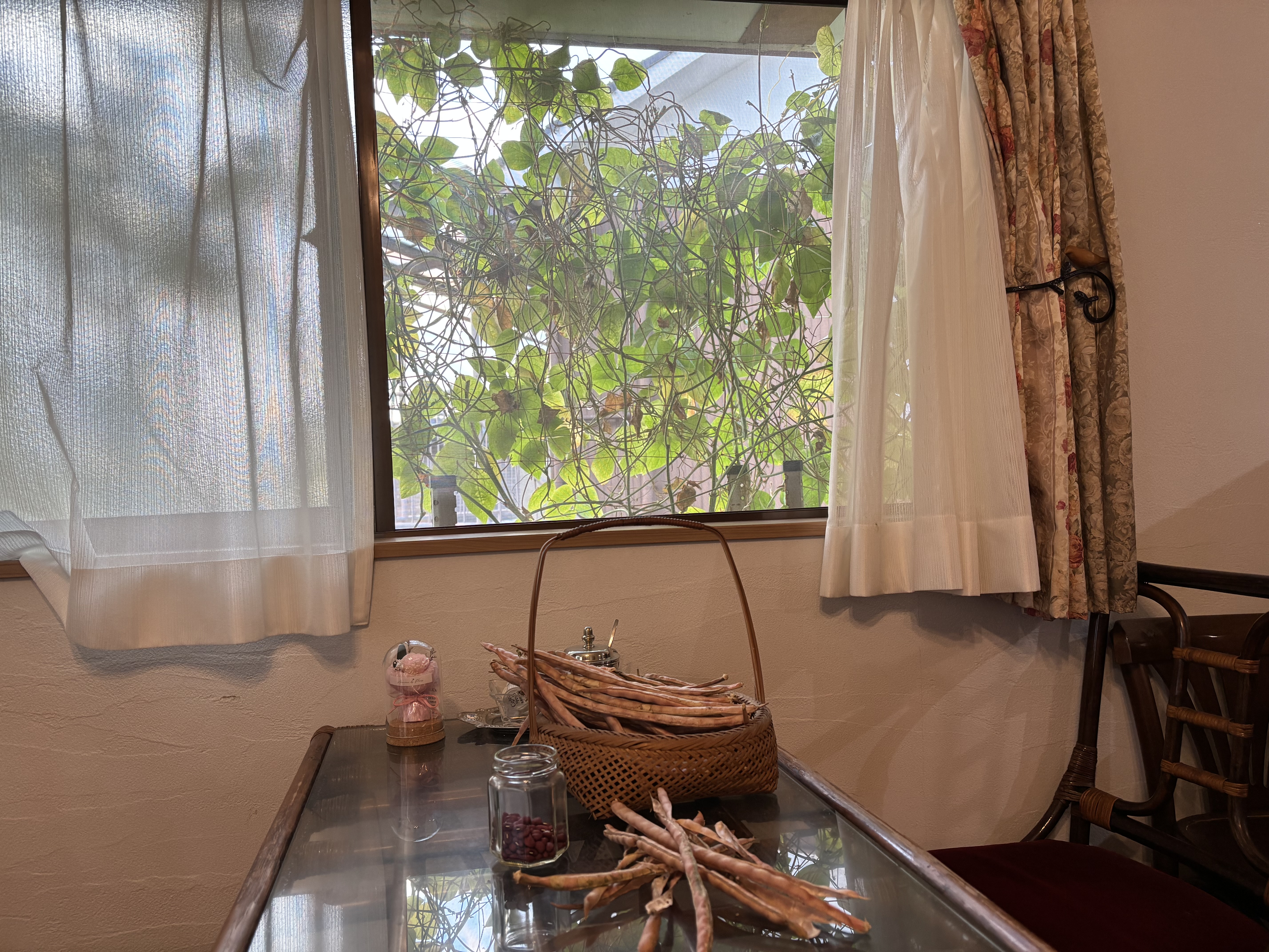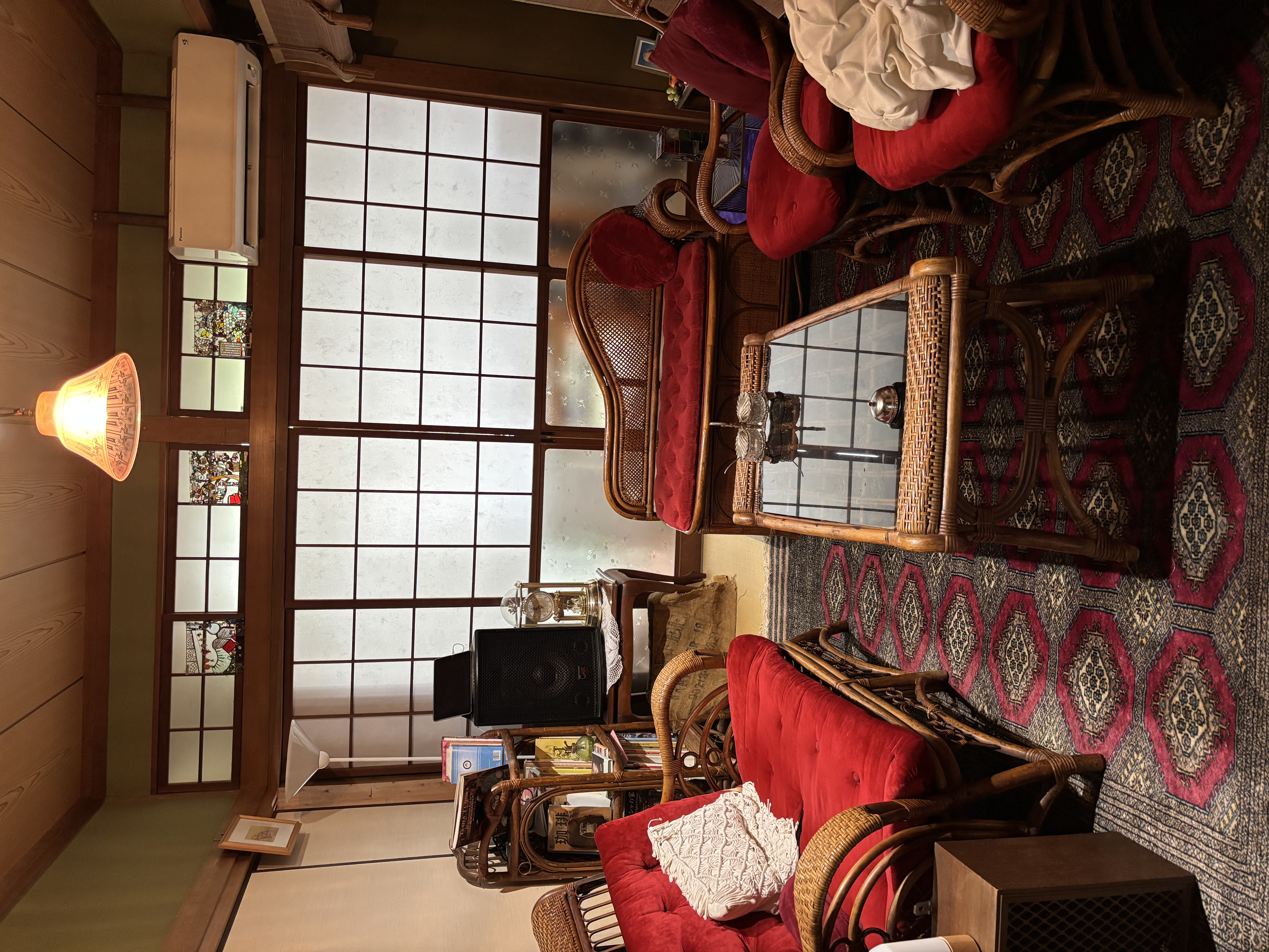 オールドラタンの家具に囲まれ、どこか懐かしく温かな雰囲気が広がります。