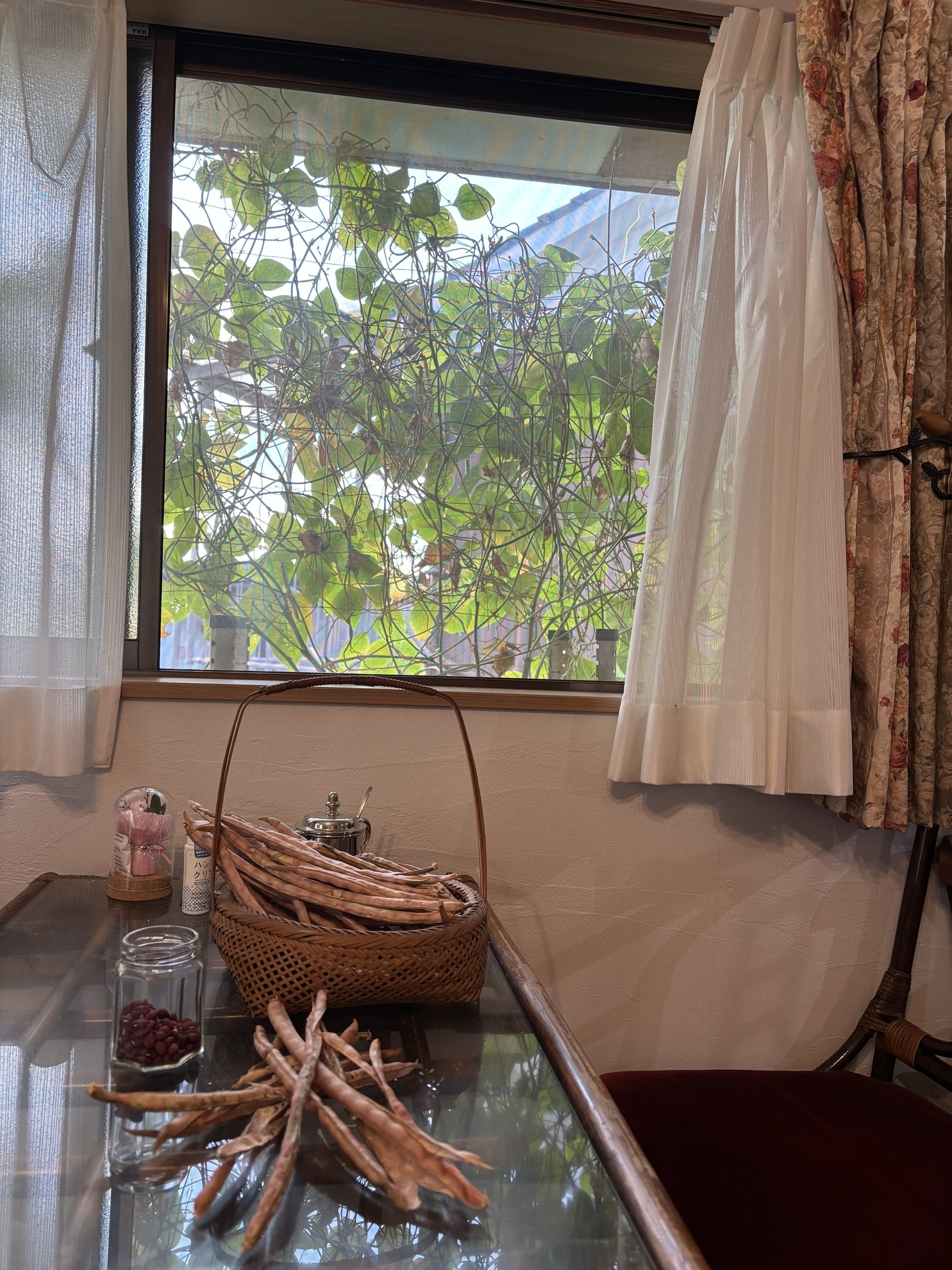 秋も深まって参りました。 西陽を和らげてくれた、窓辺のささげが 役目を終える時が来ました。 ご苦労様ありがとうね 11月1日初赤飯です。 収穫したお豆は毎月1日の お赤飯に使わせて貰います。 カテゴリー: 投稿日:2025年10月29日 前へ次へ